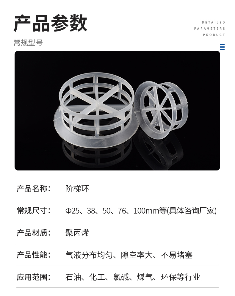 由于階梯環(huán)填料的側(cè)端增加了翻邊,不但可以增加填料環(huán)的機(jī)械強(qiáng)度,而且由于破壞了填料結(jié)構(gòu)的對(duì)稱(chēng)性,因而增加了填料投放時(shí)的定向幾率。又由于翻邊的影響,使得填料在堆積時(shí)填料環(huán)隙之間的接觸由此線(xiàn)性接觸為主變?yōu)橐渣c(diǎn)接觸為主。這樣,不但增加了填料顆粒之間的空隙,減少了氣體穿過(guò)填料層的阻力,而且這些接觸點(diǎn)還可以為液體沿填料表面流動(dòng)的匯聚分散點(diǎn),從而促進(jìn)了液膜的表面更新,有利于填料傳質(zhì)效率的提高。