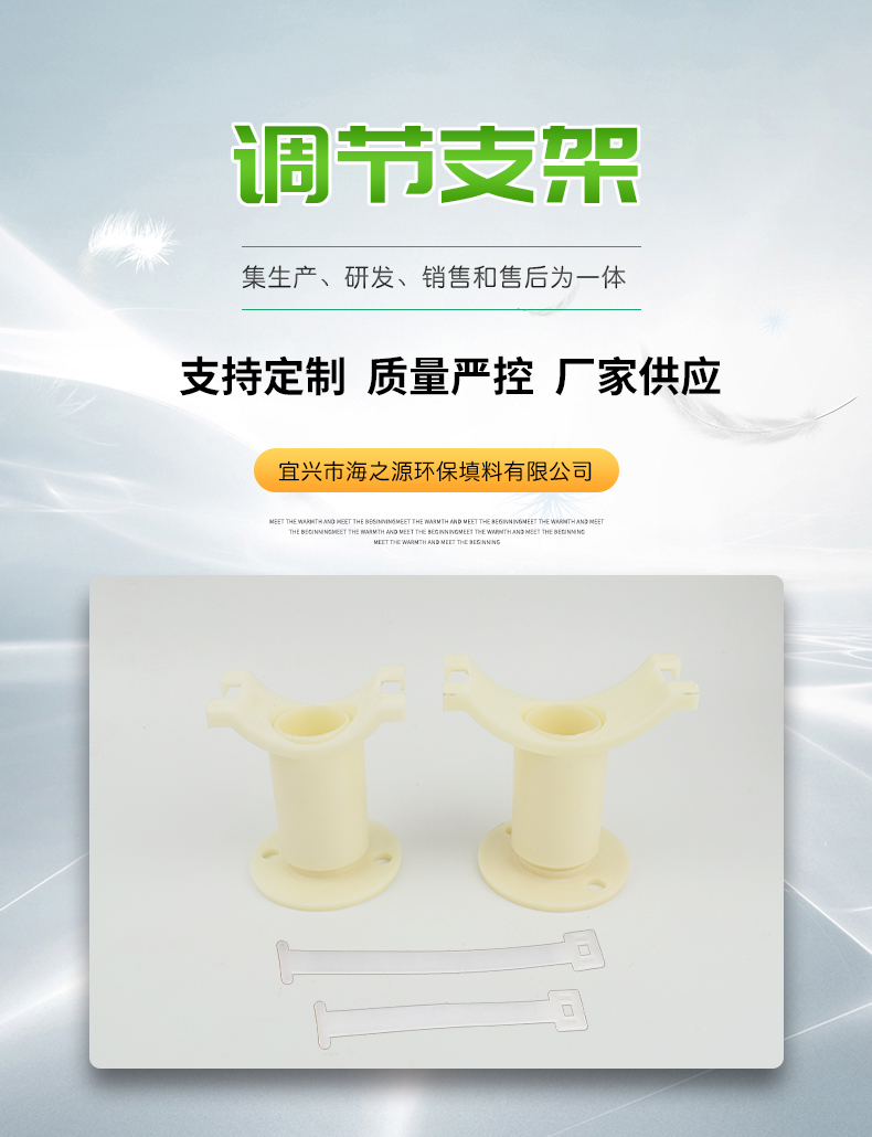 ABS可調節支架,又稱調平支架。一般支架是用于管道的安裝水平調節使用。ABS調節支架由ABS固定底座、ABS螺紋升降管、尼龍扎帶三部分組成。下部通過膨脹螺栓將可調管支架固定于曝氣池底,上部通過尼龍扎帶固定曝氣管,高度可以通過ABS螺紋升降管自由調節。